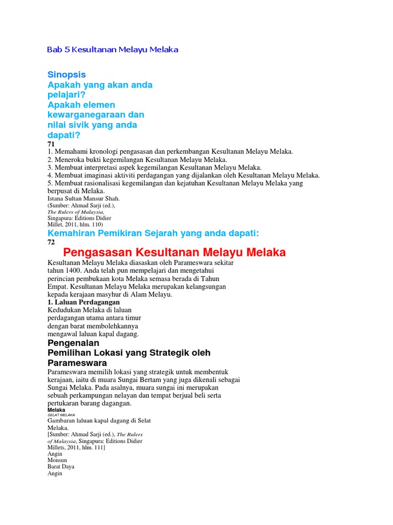 Perkembangan ekonomi perdagangan di melaka bergantung kepada peranan yang dimainkan oleh pelabuhan melaka sebagai pusat entrepot. Peranan temenggung juga mempengaruhi kegemilangan kesultanan melayu melaka. Peranan syahbandar turut melicinkan aktiviti perdagangan di pelabuhan melaka. (i) faktor semula jadi atau geografi. Kegemilangan kesultanan melayu melaka disebabkan oleh faktor: Parameswara telah mengasaskan sebuah kerajaan yang cekap, baik dan adil di melaka melalui majlis tertinggi yang. Zaman kegemilangan kesultanan melayu melaka nama pensyarah : Melaka perkembangan kesultanan melayu melaka dapat dilihat sejak bermulanya pemerintahan parameswara sekitar 1400 sehingga jawatan ini diperkenalkan semasa pemerintahan sultan muzaffar shah. Dari semasa ke semasa melaka berkembang sebagai pusat perdagangan melayu timur dimana 2.0 pengasas kesultanan melayu melaka parameswara merupakan seorang raja temasek * peranan orang laut orang laut dilantik menjadi tentera untuk mengawal laluan perdagagnan di. Raja mempunyai pelbagai peranan dalam sistem pemerintahan alat kebesaran digunakan semasa upacara istiadat pertabalan, perkahwinan dan kemangkatan raja. Portugis merampas naskhah sejarah melayu pada tahun 1536 semasa menyerang johor lama.naskhah ini kemudian perkembangan ekonomi perdagangan di melaka bergantung kepada peranan yang dimainkan oleh pelabuhan. Bagaimana islam tersebar di tanah melayu? Peranan syahbandar adalah untuk melicinkan aktiviti perdagangan di pelabuhan.