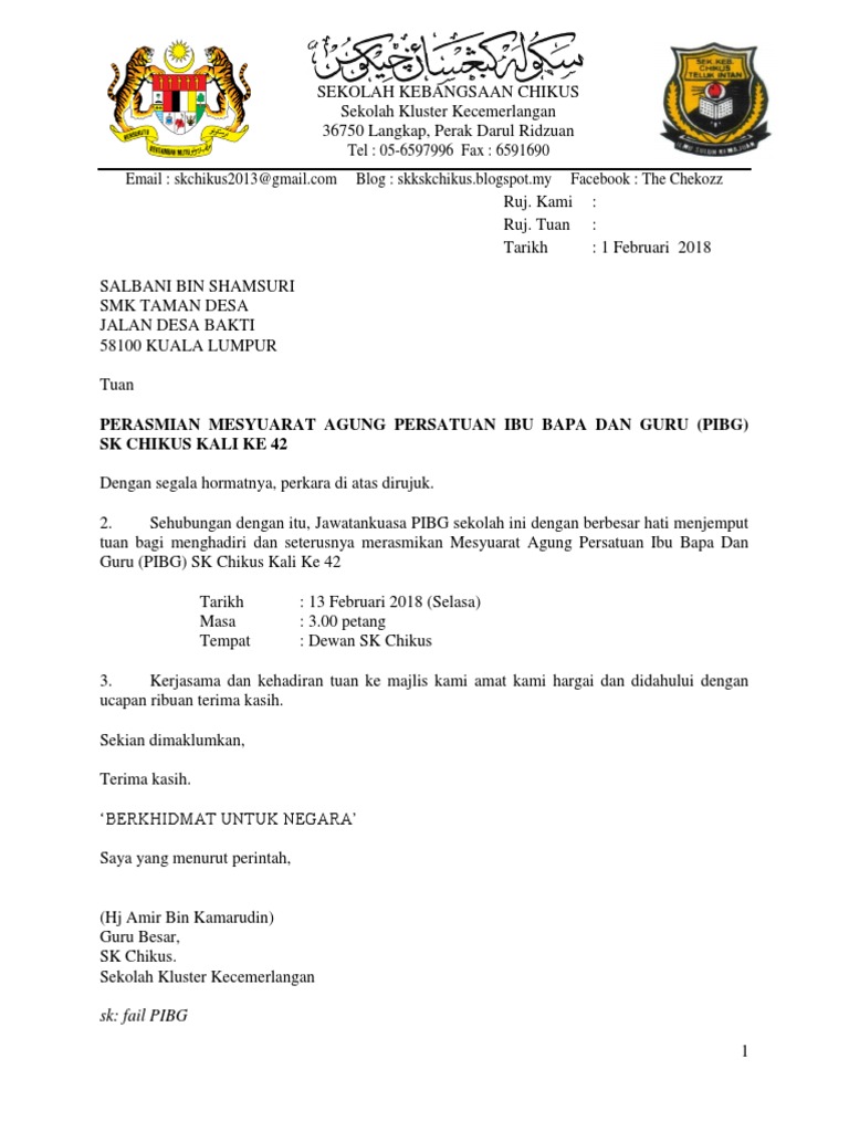 Hanya 30 orang jemputan dibenarkan untuk hadir ke majlis akad nikah dengan penjarakan satu meter bergantung kepada keluasan premis yang ditetapkan oleh jabatan agama islam wilayah persekutuan (jawi). Majlis seterusnya menjemput dan mempersilakan yang berbahagia, dr. Dengan segala hormatnya saya merujuk kepada perkara di atas, sukacita dimaklumkan bahawa pihak sekolah telah merancang bagi menjemput y.b untuk merasmikan pembukaan bangunan baru sekolah. Surat pekeliling ikhtisas bil 1.1986 ada menyatakan mengenai larangan pemberian cenderamata dalam majlis rasmi dan juga tatacara pemakaian cenderamata ini diberikan sebagai tanda ucapan terima kasih sekolah kepada pihak tersebut atas jasa merasmikan program dan majlis di sekolah. Surat jemputan ibu bapa mesyuarat p.